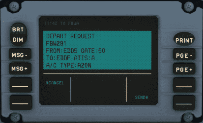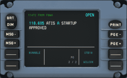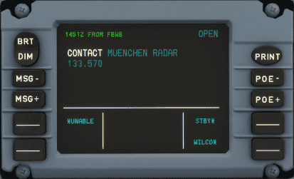 The ATC controller can send instructions to the pilot at any time. Most of the instructions or requests require an answer from the pilot via the buttons on the DCDU.
