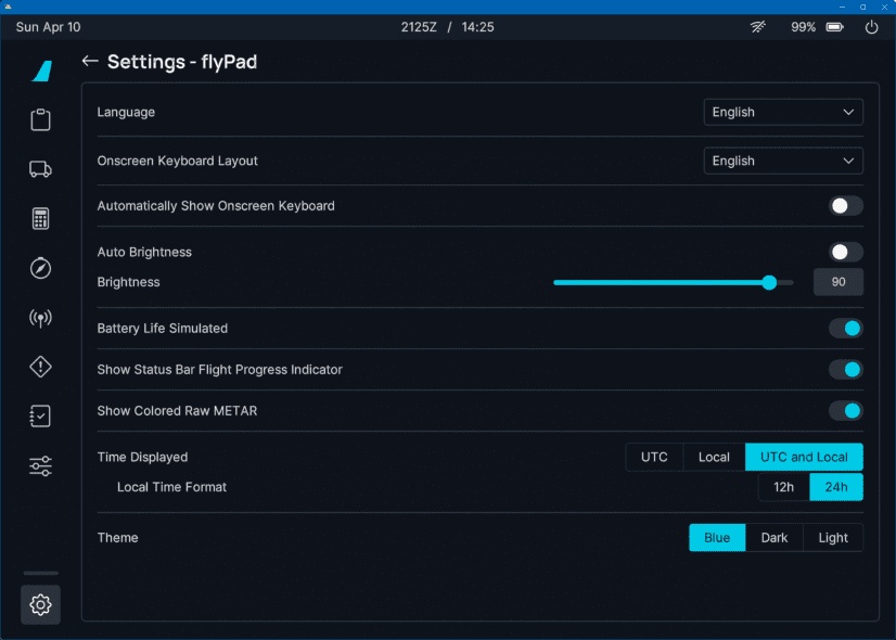 • Enable or disable the colored raw METAR on the flyPad Dashboard.