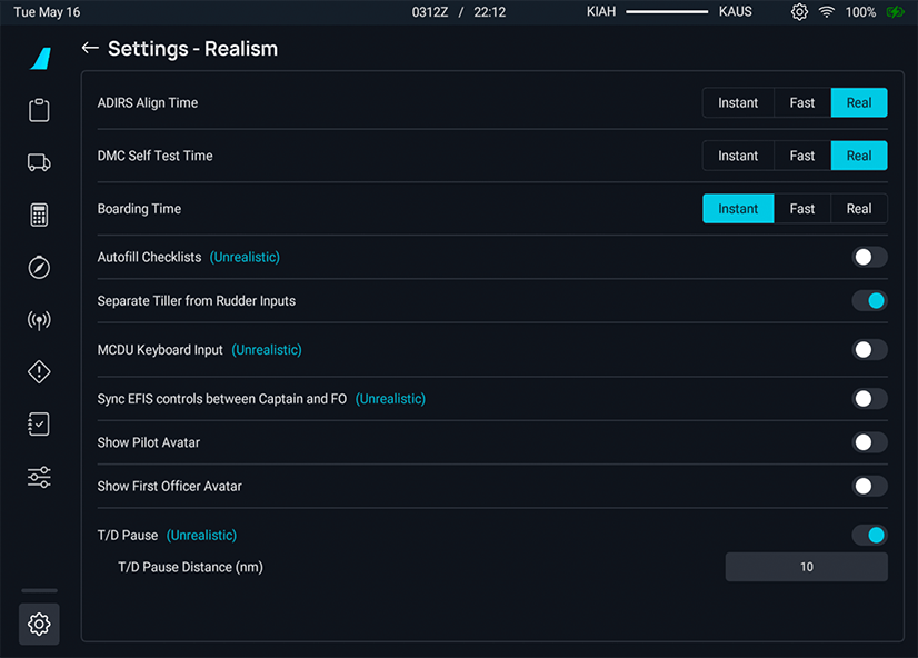 • Sync EFIS and Audio Controls between Captain and FO (unrealistic)