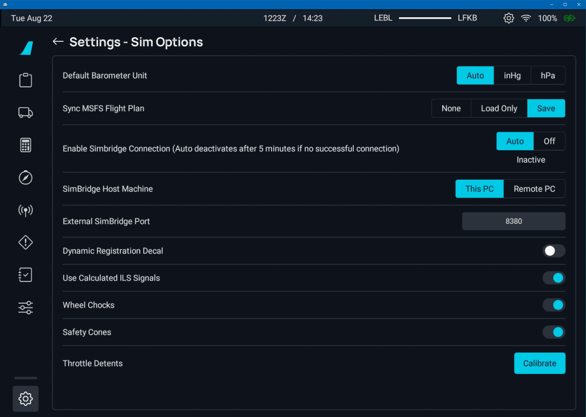 • User can set if and how the flight plan synchronization between the simulator and the aircraft should work.