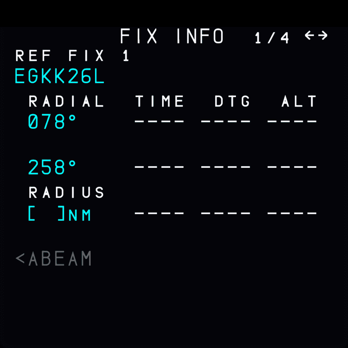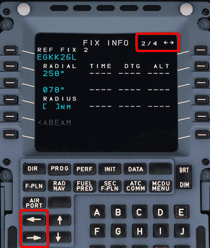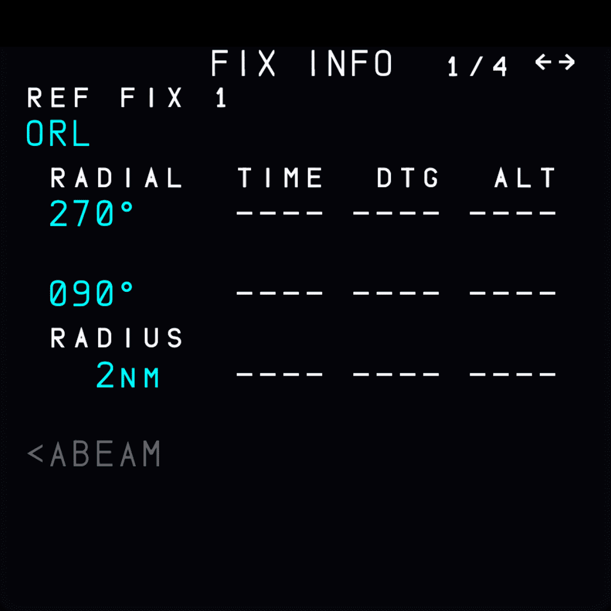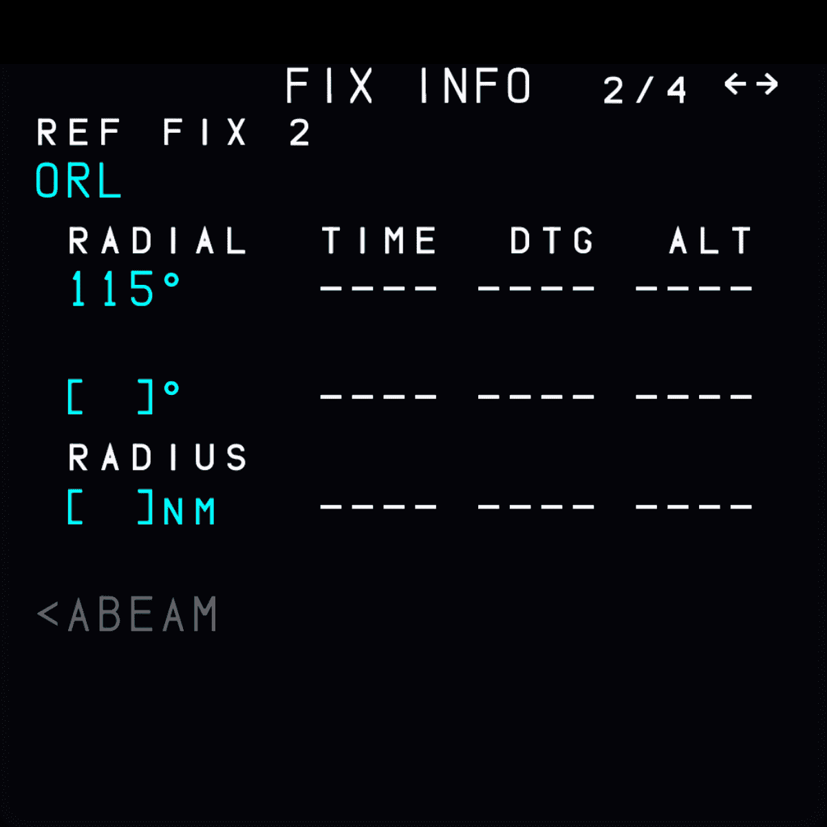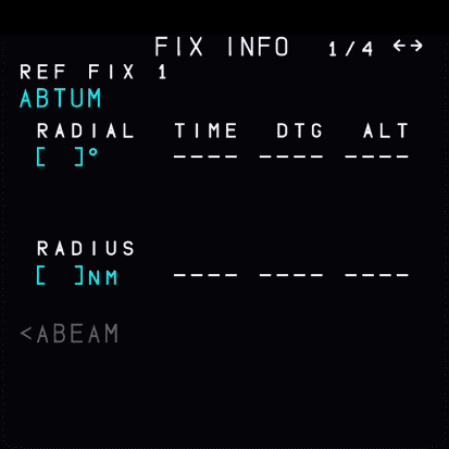 The MCDU FIX INFO pages are used to create waypoint intersections of the flight plan with radial, radius, and abeam intercept points associated with a waypoint.