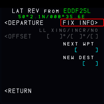This brings up the lateral revision page for this waypoint and also displays the FIX INFO page option. Press the right LSK next to FIX INFO