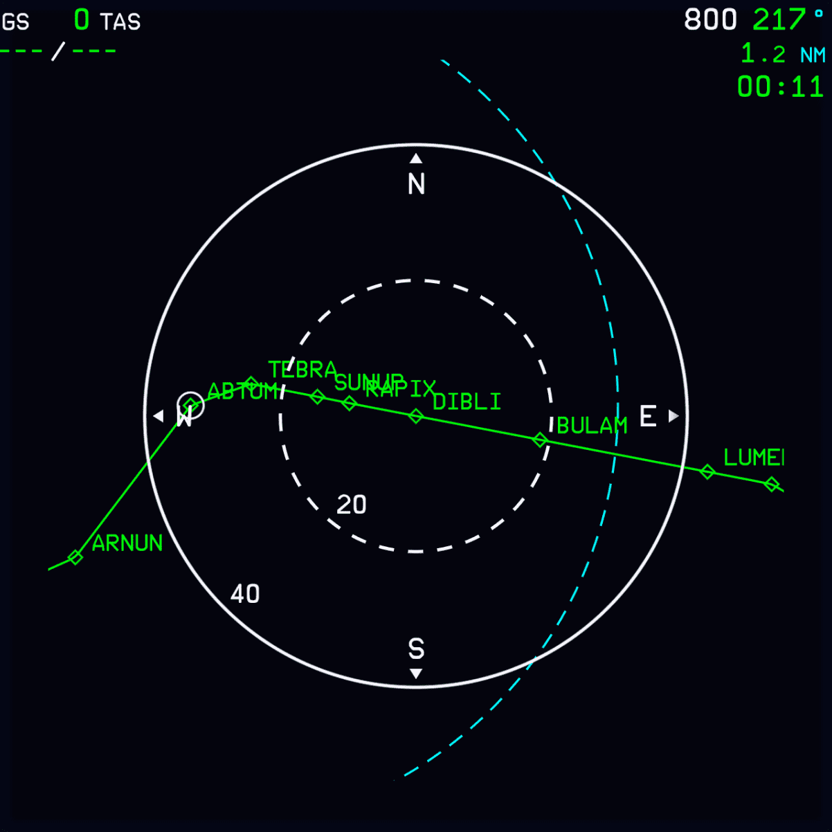 These lines or circles are displayed on the ND and also used to compute intercept waypoints, which are then added to the active flight plan.