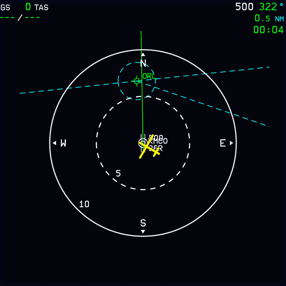 To visualize these points, we can use the fix info page to define a 2 NM distance circle and 2 lines for R155 and R090/270 on the ND.