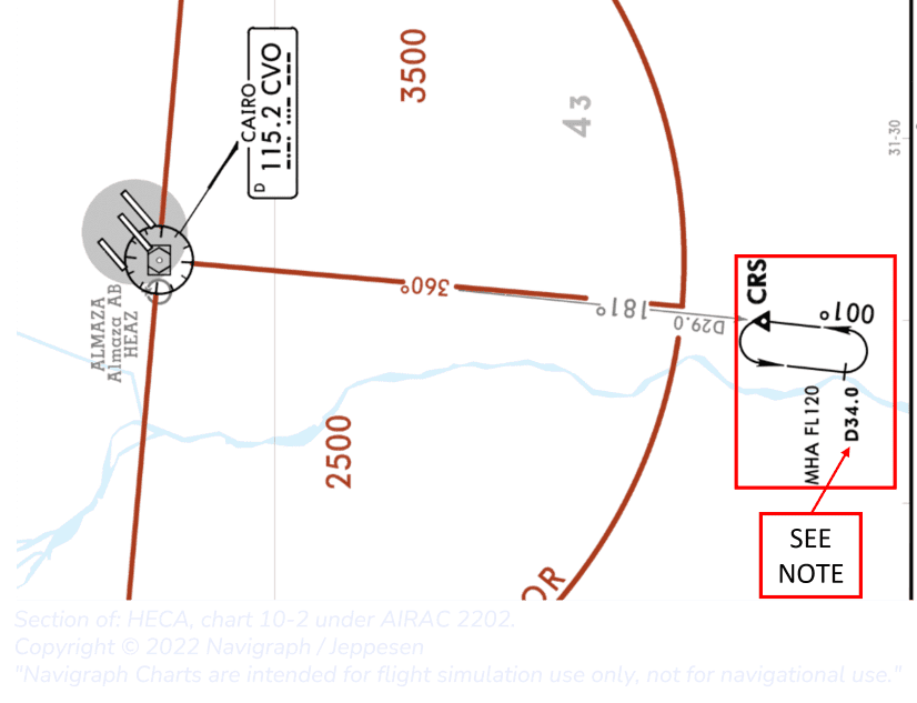 NOTE: The leg length for the CRS hold is presented as a distance from another navigational beacon