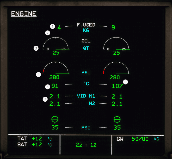 7 N1 and N2 vibrations Green number The vibration of the low-pressure and high-pressure rotor is within normal operating range.