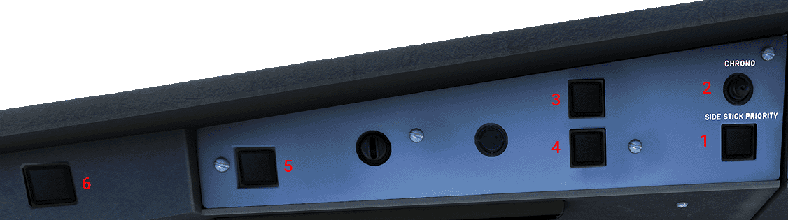 • If a pilot who has taken priority by using the TAKEOVER pb and the other pilot's sidestick is in motion or not neutral, the light of the pilot who has taken priority illuminates. It will extinguish when the opposing sidestick returns to the neutral position.