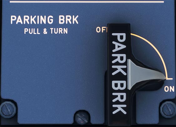 To apply the Parking Brake, the flight crew pulls this handle and turns it clockwise.