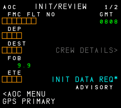 This page is used to initialize the FMS with the flight plan from SimBrief.