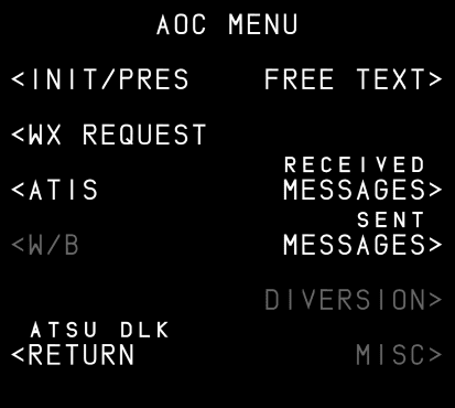 • The FMS AOC function gives an interface between a ground station and one onboard FMGC, allowing data transmission between these two computers via the ACARS Management Unit or the ATSU.