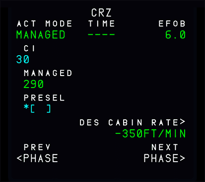 Note: If the pilots activate the approach phase inadvertently, they can reselect the cruise flight level into the progress page to reactivate the cruise phase.